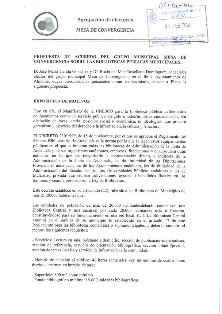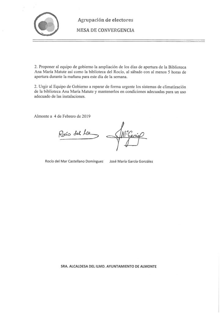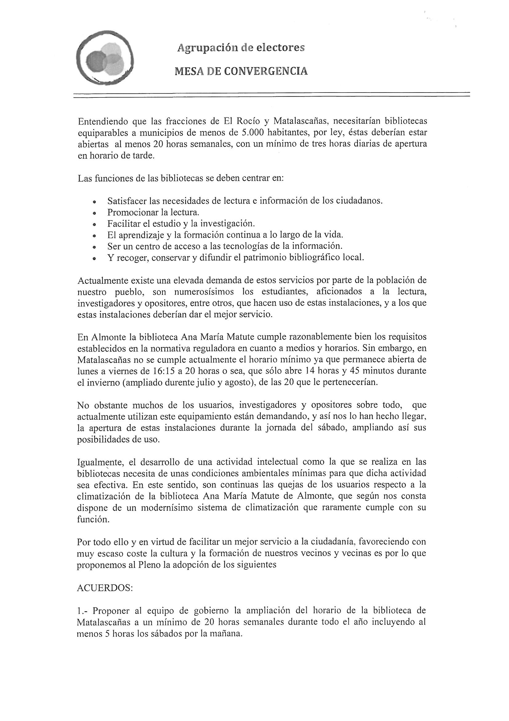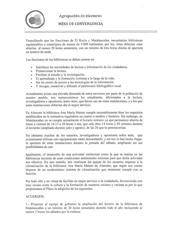 En el pleno de febrero 2019 propusimos la apertura de las bibliotecas de los tres núcleos un mínimo de 20 horas semanales, incluyendo 5 horas los sábados por la mañana, así como un mantenimiento adecuado de las instalaciones, incluyendo sistemas de climatización en correcto funcionamiento.