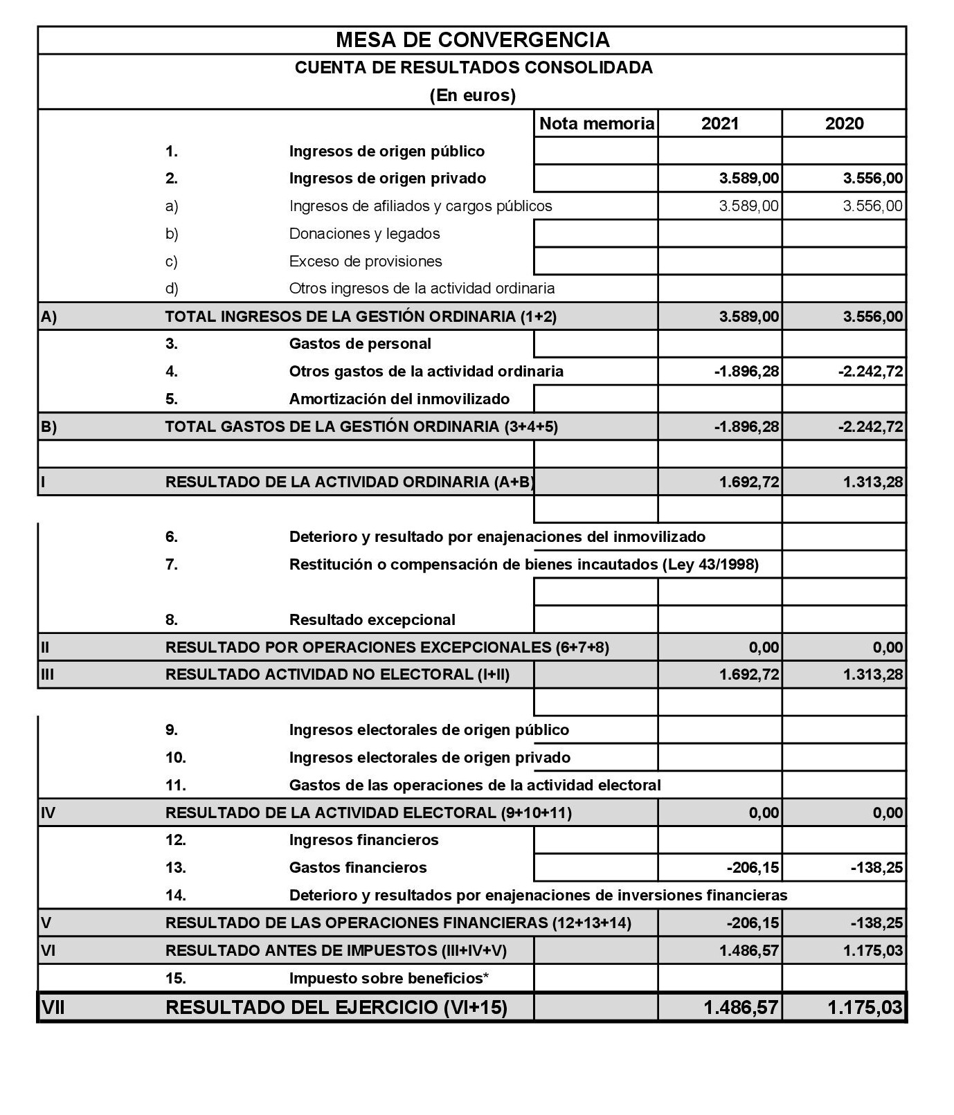 Presentamos el Balance de Situación y Cuenta de Resultado del 2021
