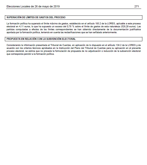 Informe del Tribunal de Cuentas elecciones 2019